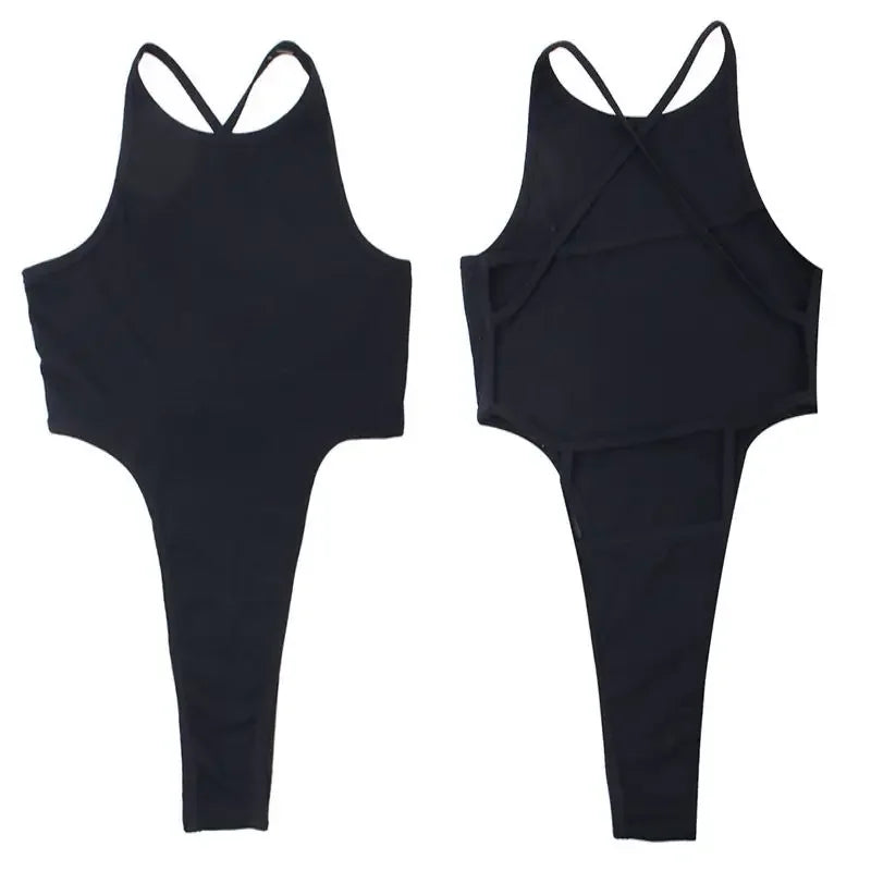 Luminous Summer Bodysuit – Backless Cross-Strap, Sleek Ribbed Fit (Black)